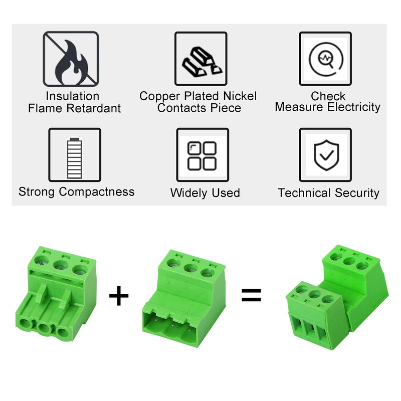 - Specification: 3-pole terminal spacing: 5.08 mm. Rated voltage: 300V 15A. Plug-in terminal, non-welding plunger. One set: female head wiring socket. Suitable for electrical connection, say goodbye to traditional wiring, say goodbye to the dangerous, safe wiring.