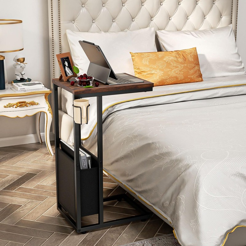 Ginzeca C Shaped Side Table, End Table with Storage Bag,Space-Saving Design,Skinny Side Table for Small Spaces, Couch and Bed, Living Room, Bedroom