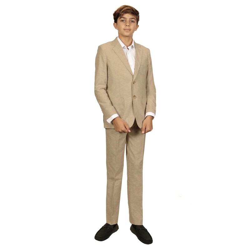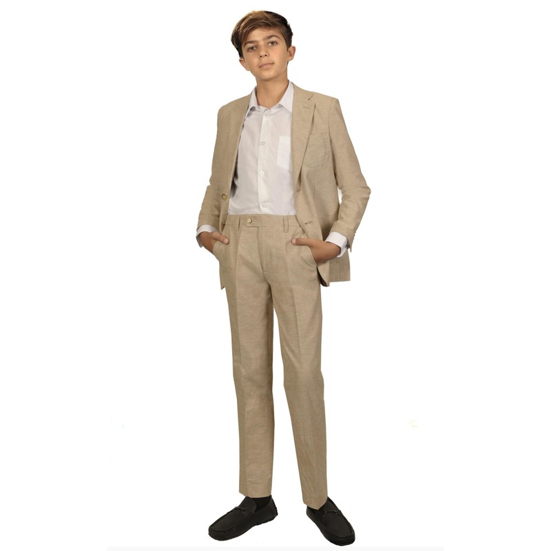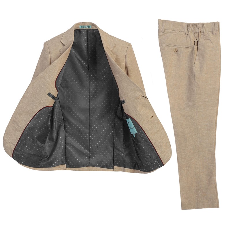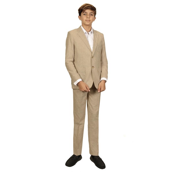Gioberti Boy's Linen Suit Set Jacket and Dress Pants, Khaki, Size 14
