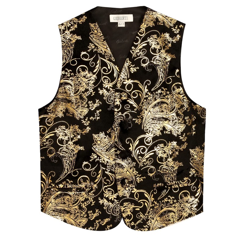Gioberti Kids and Boys 4pc Paisley Vest Set, Black Gold, Size 4-5
