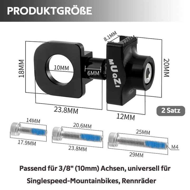 - Universal application: suitable for 3/8 inch (10 mm) axles, our chain tensioner is universally suitable for single speed mountain bikes, road bikes and bicycles. This makes it a versatile accessory for different types of bicycles.