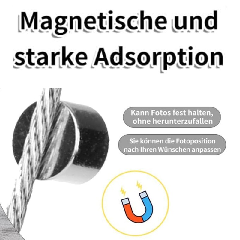 - Specifications: Package contains 4 photo ropes and 48 magnets. The wire rope size is 2 m x 1.5 mm, you can change the photo at any time to meet different requirements