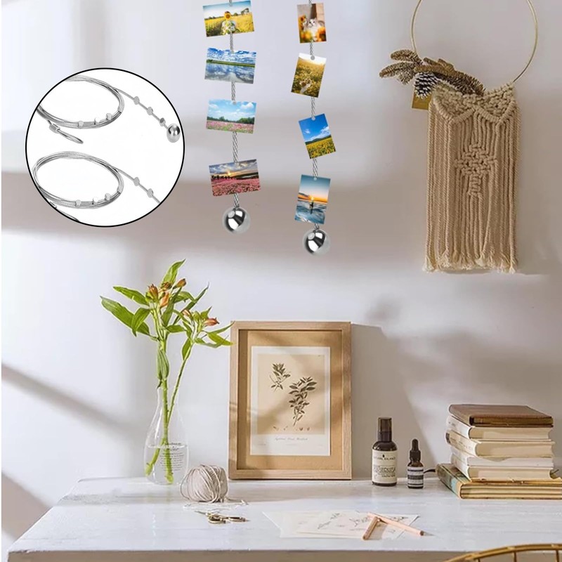 - Widely used: perfect for photos, postcards, artwork, and notes, this photo wire rope adds a stylish touch to living rooms, offices, or events. Create romantic or modern displays with effortless flexibility.