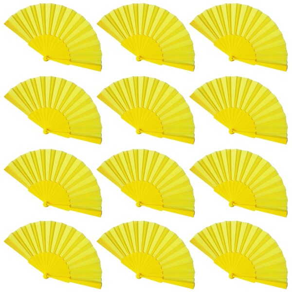 Gionforsy 12pcs Clap Fabric Folding Chinese Tai Chi Fan Set Decorative Folding Hand Fan for Festival Dance Party (Yellow)