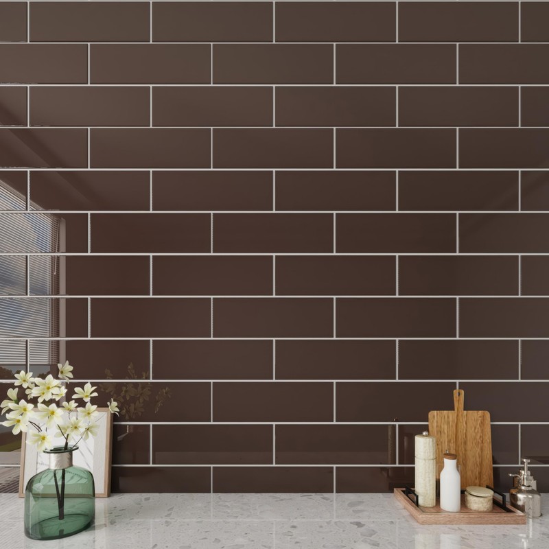 Giorbello Glass Subway Backsplash Tile, 4x4, Classic Brown, Sample Tile (1 Piece)