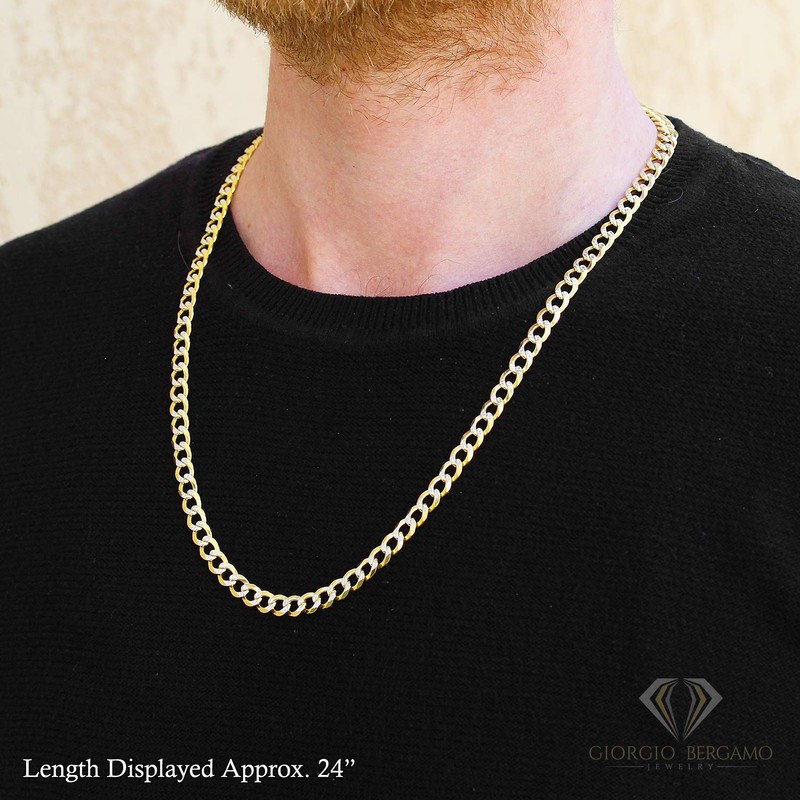 Giorgio Bergamo 925 Italian Sterling Silver 6.5mm Solid Cuban Diamond Cut Chain, ITProLux Yellow Gold Plated Curb Pave Link Necklace, (30)