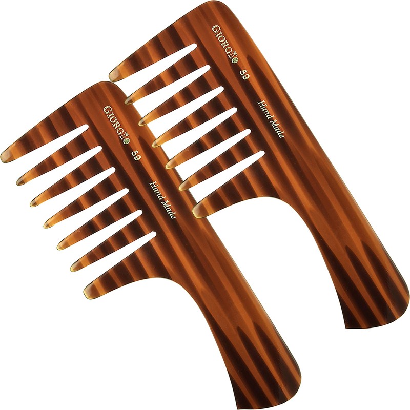 Giorgio G59 Large Coarse Hair Detangling Comb, Wide Teeth for Long Thick Curly Wavy Hair. Hair Detangler Comb For Wet and Dry. Handmade Rake Comb Saw-Cut from Cellulose Hand Polished Tortoise Shell