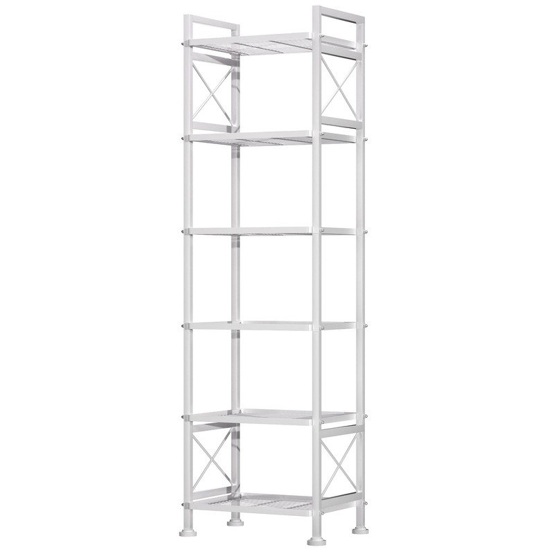 - 【Versatile Storage Solution for Various Rooms】Measuring 12.7"D x 16.9"W x 64.9"H, these tall shelves fit snugly in narrow areas. Use them as kitchen shelves, closet shelves, or utility shelves for storing toiletries, books, plants, and more. The X-type side design adds a modern accent.