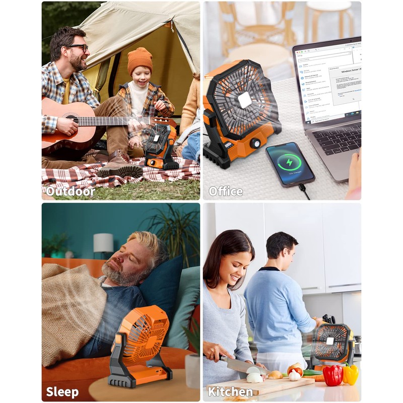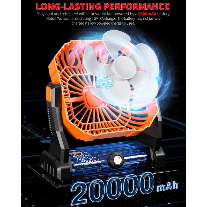 • Power Bank FunctionOur rechargeable fan is designed to provide you with long-lasting performance, thanks to its high-capacity 20000 mAh battery. this fan doubles as a mobile power supply, you can charge a variety of devices on the go.