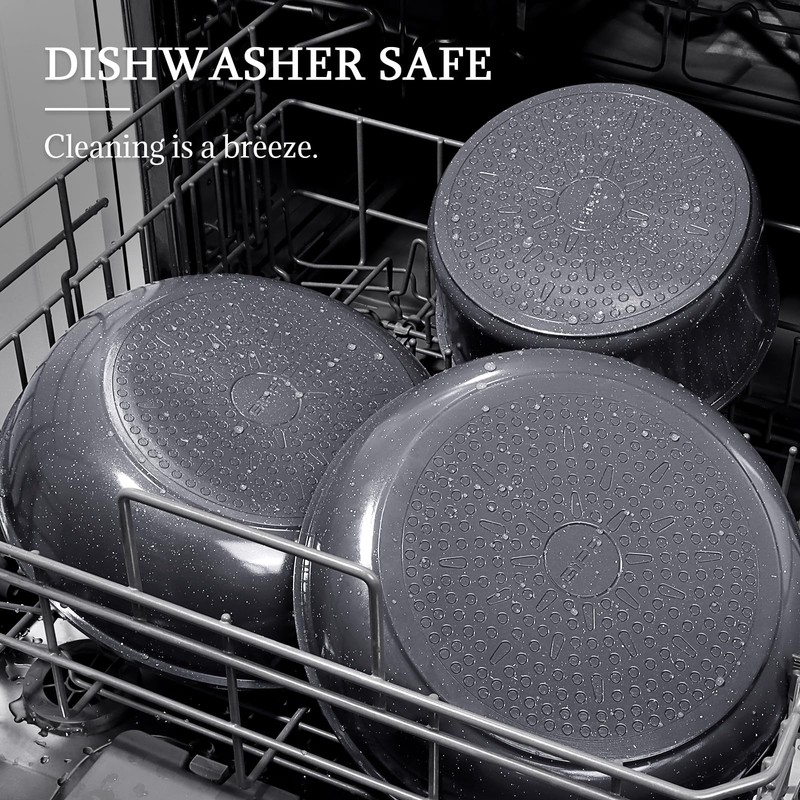 ●Natural non-stick coating provides excellent non-stick performance and is non-toxic and PTFE, PFAS, PFOA, PFOS, APEO free for healthy cooking
