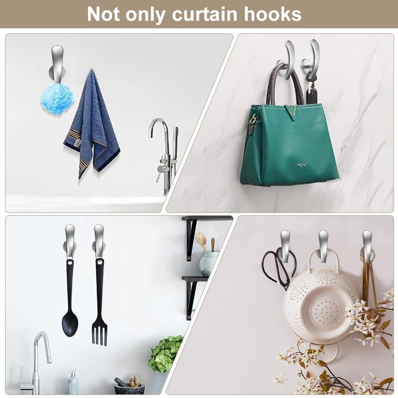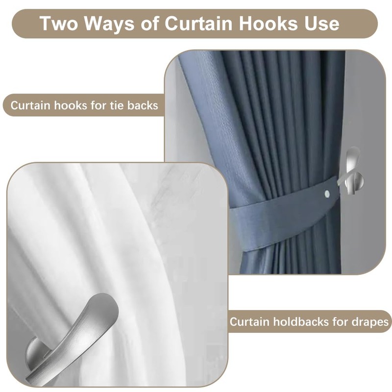 - 【Suitable for Many Rooms, Improve Space Use】: Our curtain holdbacks are suitable for installation in different rooms such as living room, bedroom, bathroom and balcony. You can not only hang curtains, but also store clothes, towels, bags and other everyday items. They are particularly suitable for optimising small spaces and help you make the most of the space on the walls and keep the environment clean and tidy