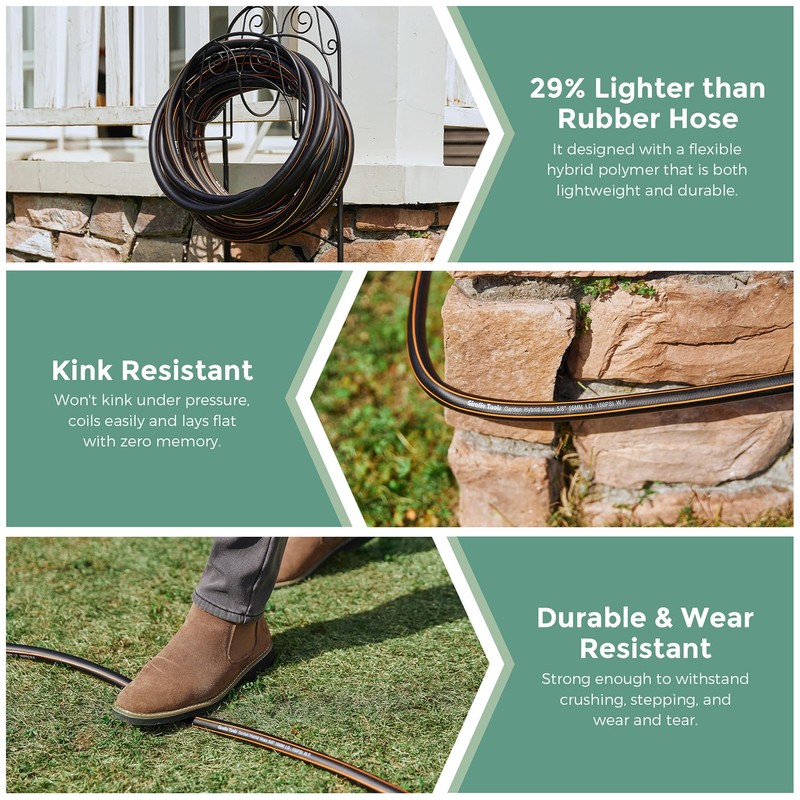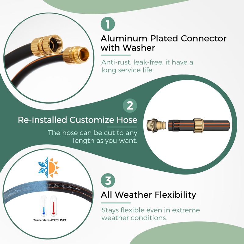 - All-weather Flexible: This hose can resist wide-range outside temperature from -40 to 150 degree fahrenheit, suitable for all seasons. The rubber component allows the hose to remain flexible in extreme temperatures, defying heat or cold, still easy to coil and uncoil.