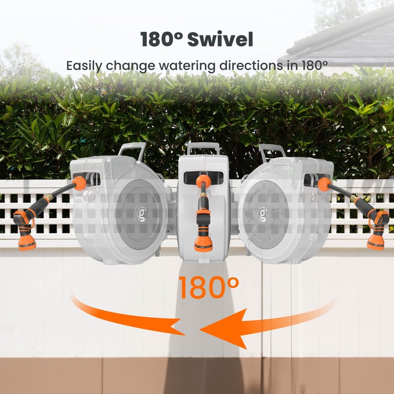 Giraffe Tools Retractable Hose Reel 1/2" x 65 ft Heavy Duty Water Hose Reel, Swivel Bracket, Any Length Lock, with 9-Function Sprayer Nozzle