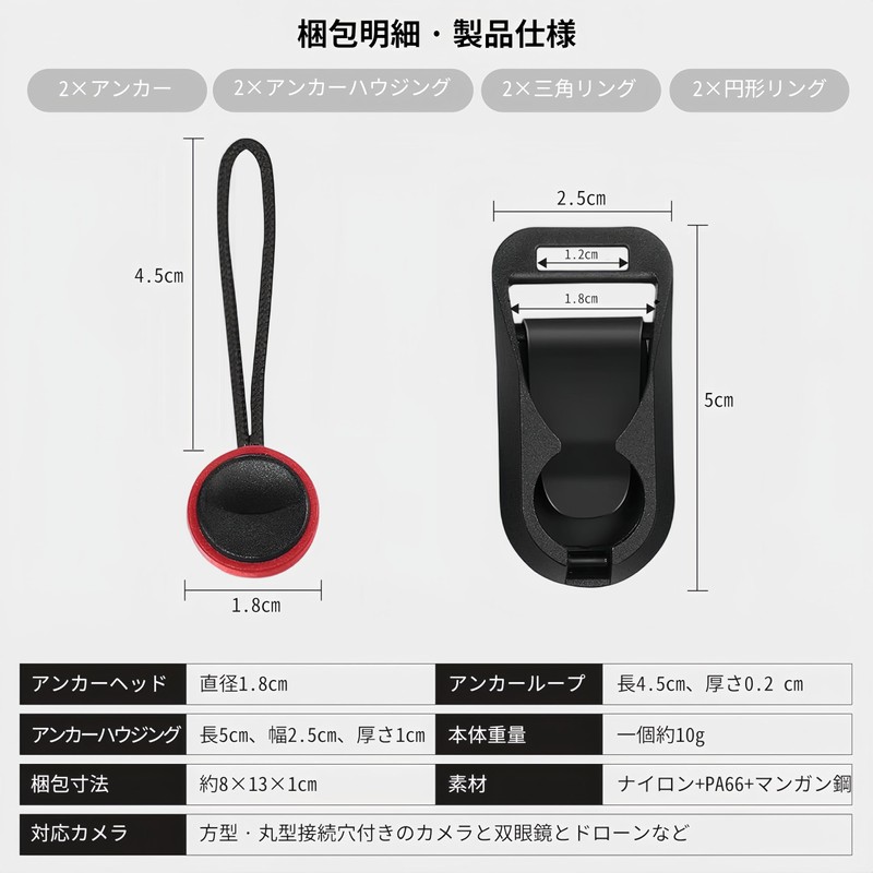 - PRODUCT SPECIFICATIONS: The inner diameter of the square hole of the camera accessories is about 18mm, compatible with most traditional camera straps and shoulder straps. This makes it easy to achieve a stable connection between the device and the strap. The strap itself weighs only 0.3 oz (9 g), making it very convenient to carry