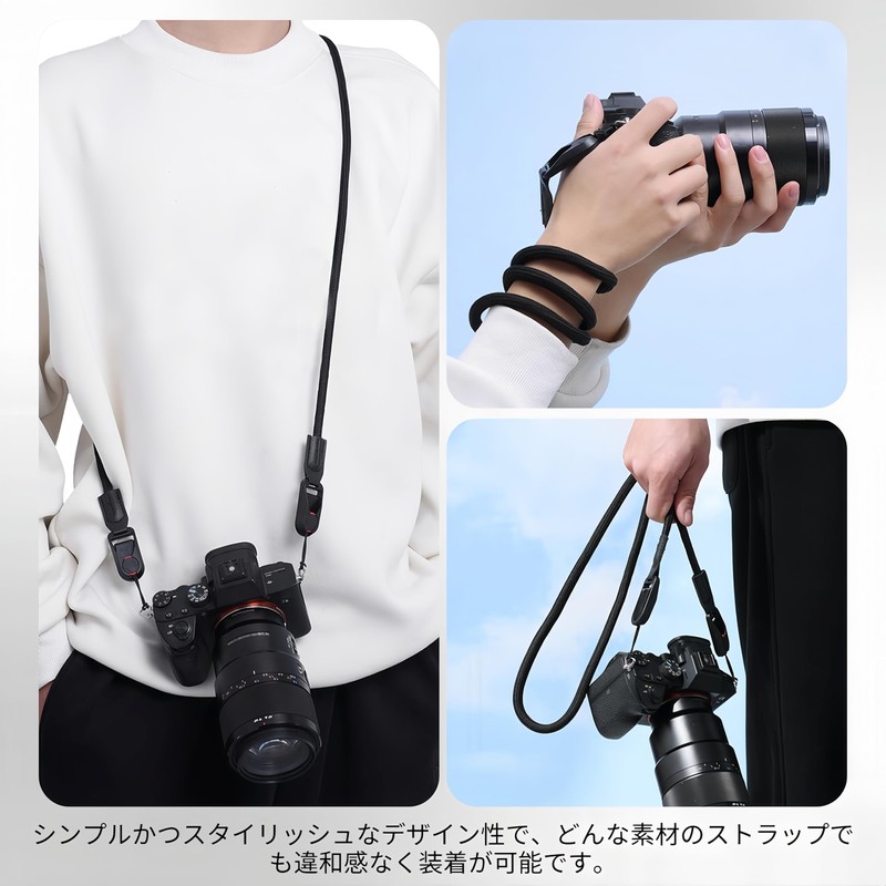 - EASY OPERATION AND QUICK DETACH: The strap hardware adopts a unique quick release design, which makes it easy to install and remove the camera strap. No need to turn the complicated buckle, quick on/off with the push of a button. Shorten shooting prep time and enjoy shooting efficiently