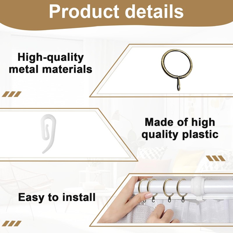 - 【Curtain Rings Gold】Crafted from premium materials, these curtain rings are durable and strong enough to hold heavy curtains or drapes. They prevent slipping and do not deform under the weight of heavy droppings.