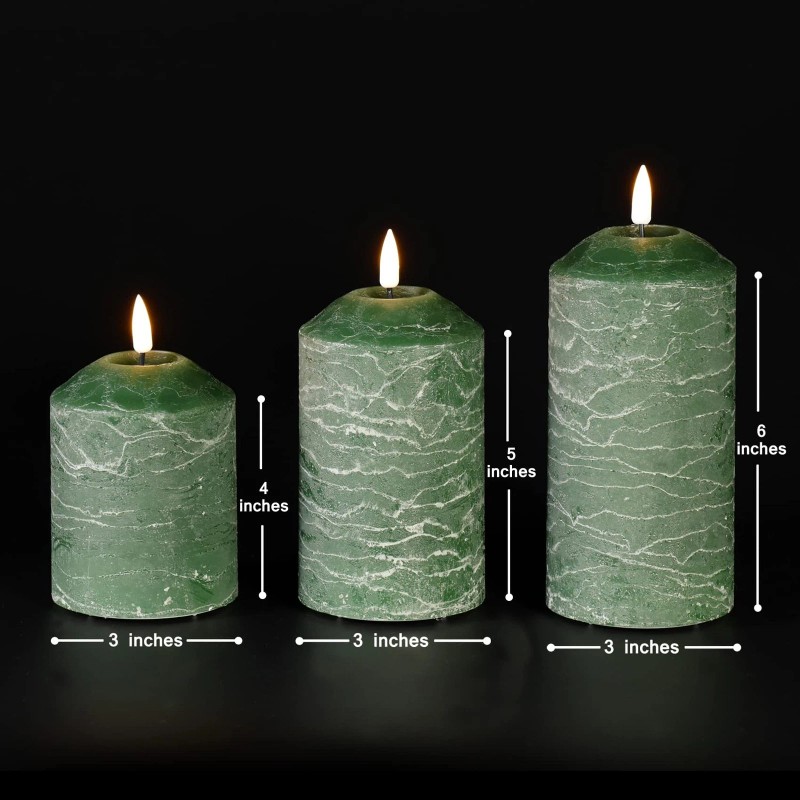 Girimax Green Flameless Pillar Candles with Remote, Flickering Real Wax Battery LED Candles Set of 3