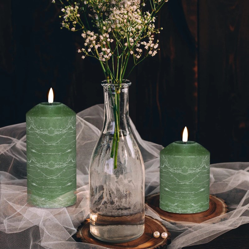 Girimax Green Flameless Pillar Candles with Remote, Real Wax LED Candles Batt...
