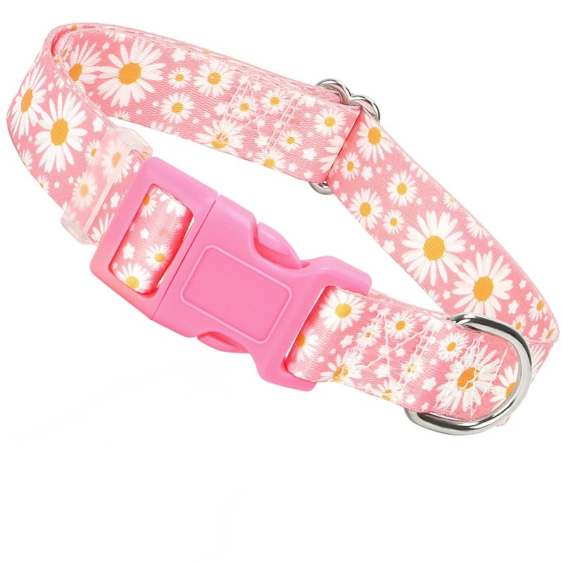 Girl Dog Collars for Large Dogs,Female Dog Collars with Pink Daisy Flowers, Adjustable Comfy Soft Pet Collar with Safety Buckle for Small Medium Large Dogs(Daisy L)