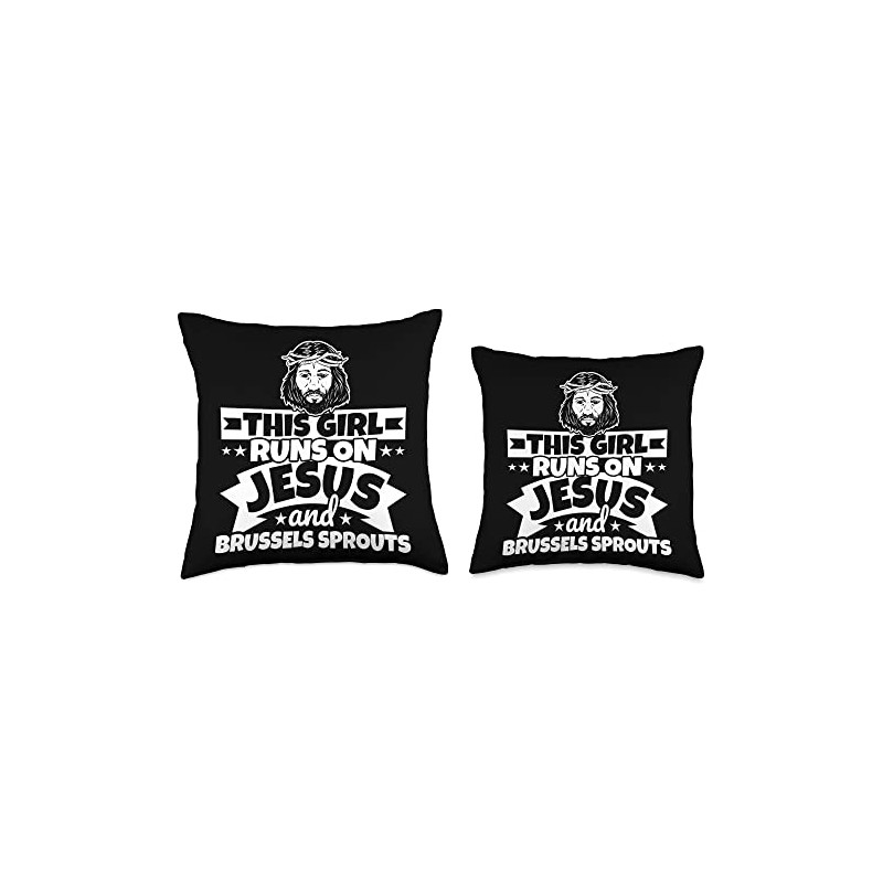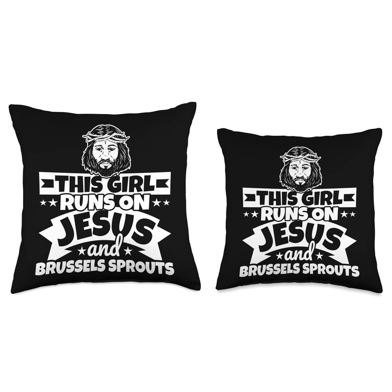 Girl runs on Jesus and Brussels sprouts Throw Pillow, 18x18, Multicolor