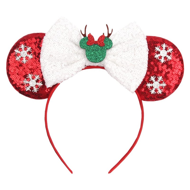 Girls Christmas Headwear Mini Mouse Style Bowknot Hair Hoop Cute Headband Xmas Holiday Party Supplies Gifts (Antlers 1)