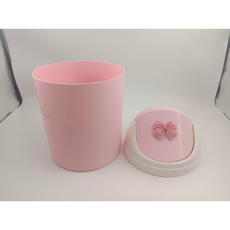 Girls Cute Pink Desktop Mini-Trash Bin Can Waste Bucket with Pink Bow (Resin Bownot)