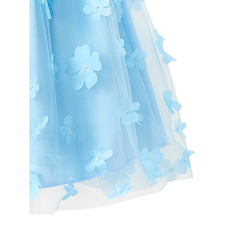 Girls Dresses Blue Wedding Bowknot Flutter Sleeve Square Neck Princess Tulle Floral Tutu Formal Sundress Kids Summer Outfits Toddler Flower Dress 4-5 Years