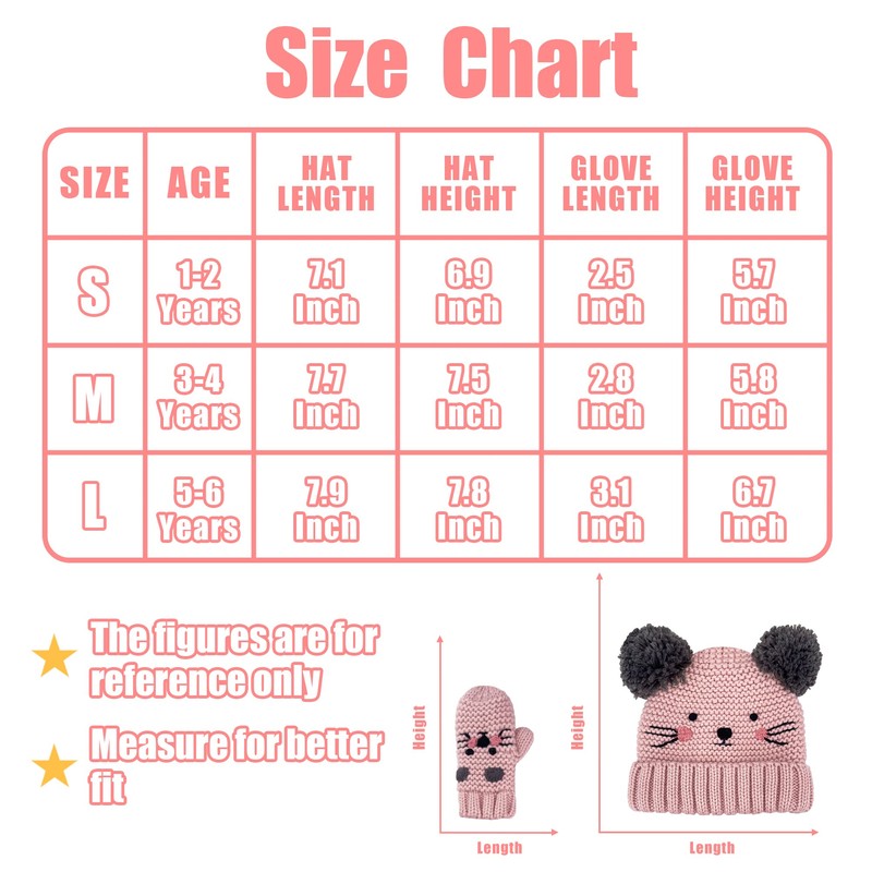 - Super warm: both the hat and the mittens gloves are knitted layers, and there is soft cotton cloth inside, ensures better heat retention, elastic pull down to cover children's ears, face and hands and keep your children warm all the time