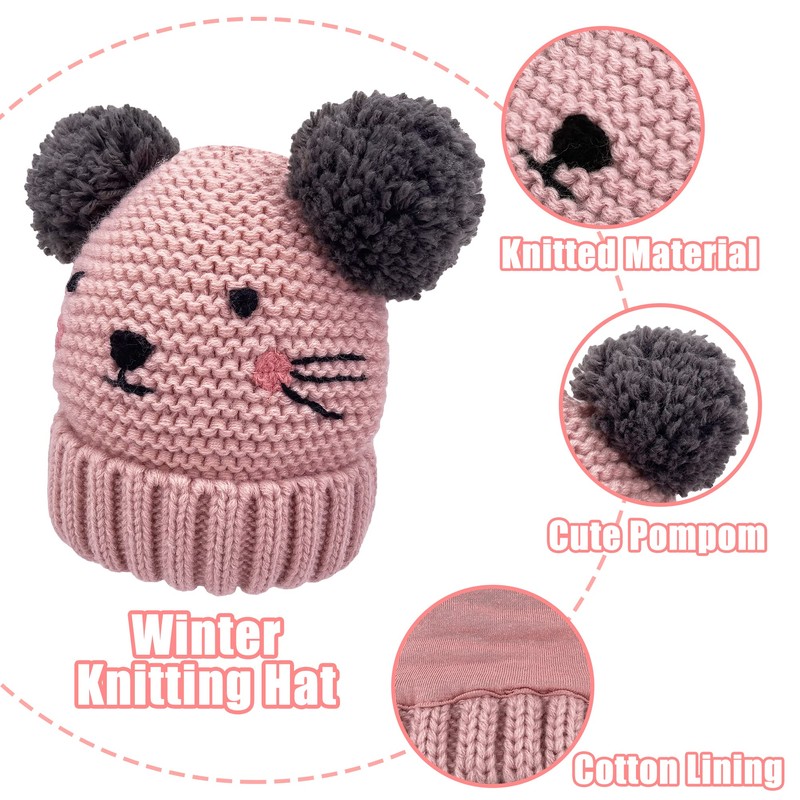 - Unique Design: This bobble hat for girls has a rabbit design in pink and is a hat that little girls will love. There are two comfortable and cute pom poms on the hat