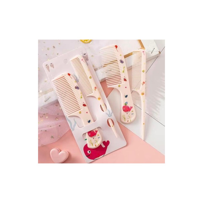 Girls Kids Cute Hair Comb Set, Portable Anti-Static Plastic Hairdressing Comb Hair Comb Gift Combo of 2 packs (pink+green)