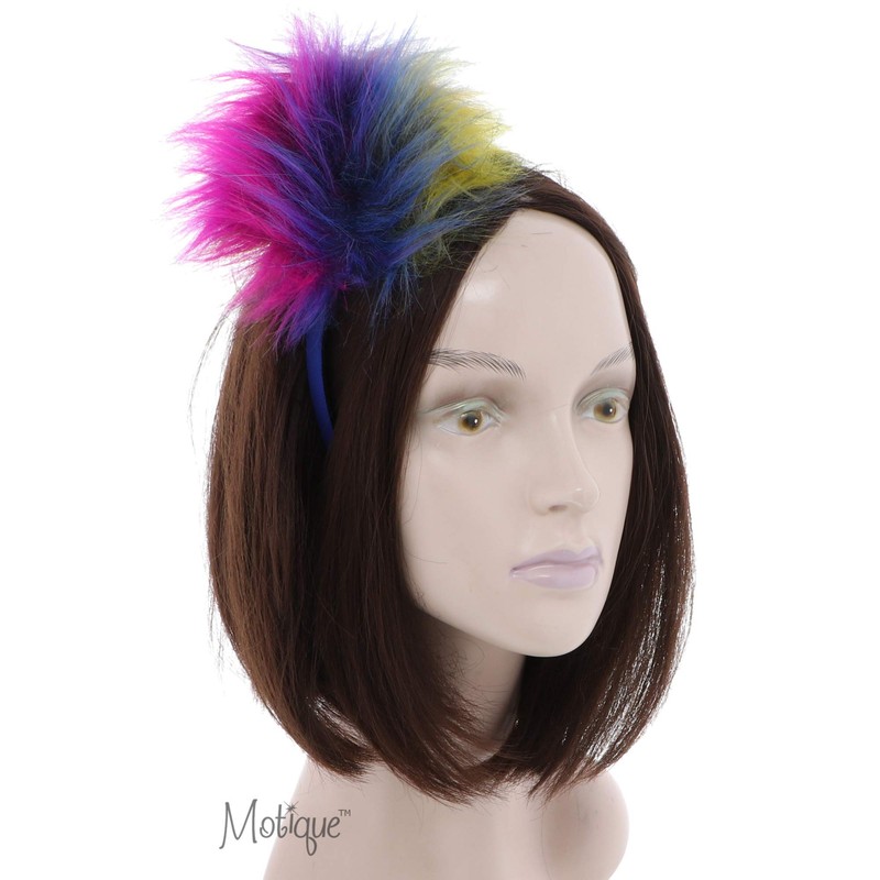 Girls Large Colorful Messy Fur Headband With Teeth - Rainbow