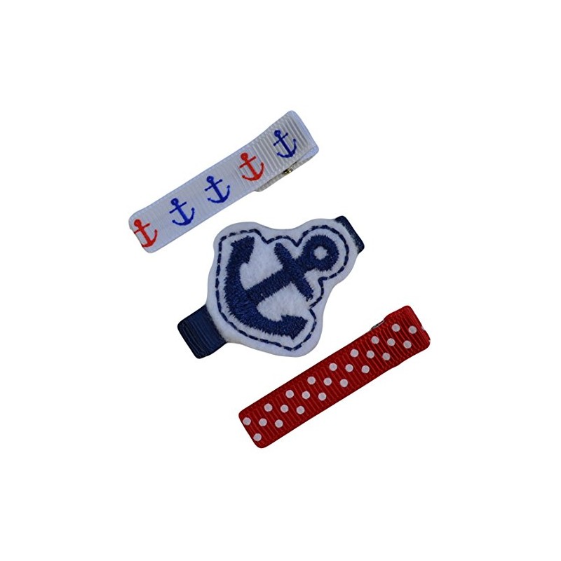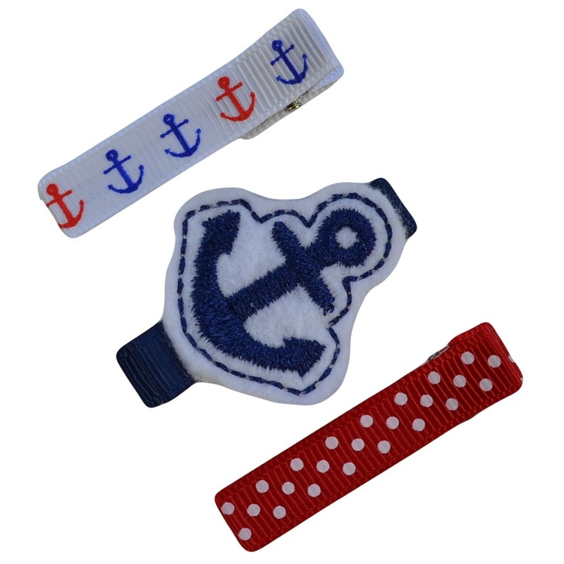 Girls Nautical Anchor Alligator Hair Clip Set (Red)