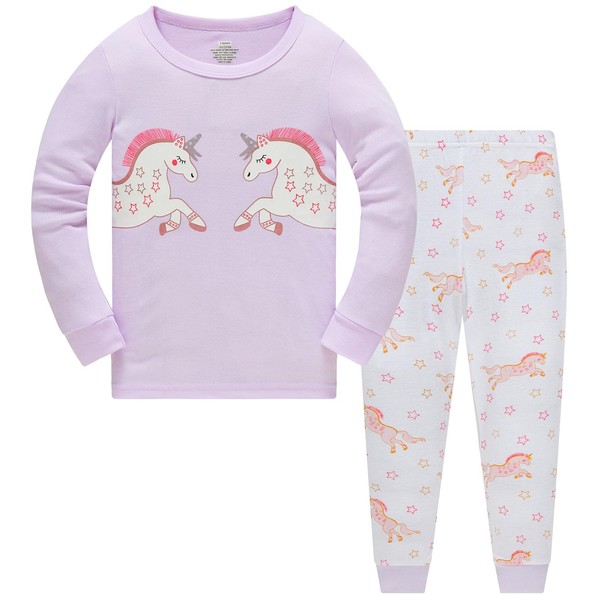 Girls Pyjamas Set Cotton Toddler Clothes Christmas Sleepwear Unicorn Printed Nightwear Long Sleeve Pjs 2 Piece Outfit Xmas Gift for Kids Age 7-8 Years