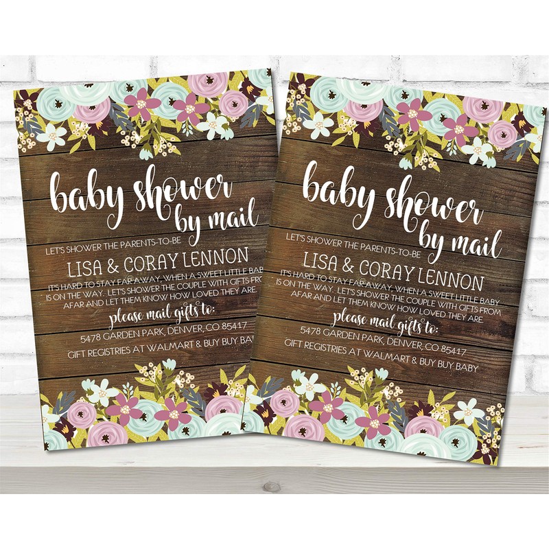 Girls Rustic Lavender And Mint Baby Shower By Mail Invitations, Virtual Baby ...