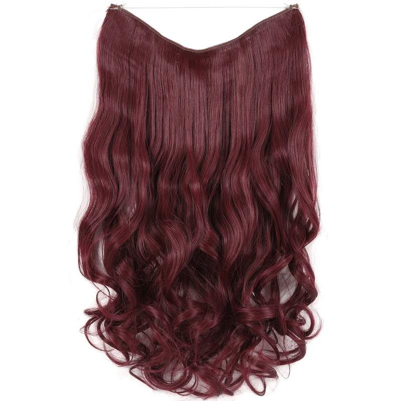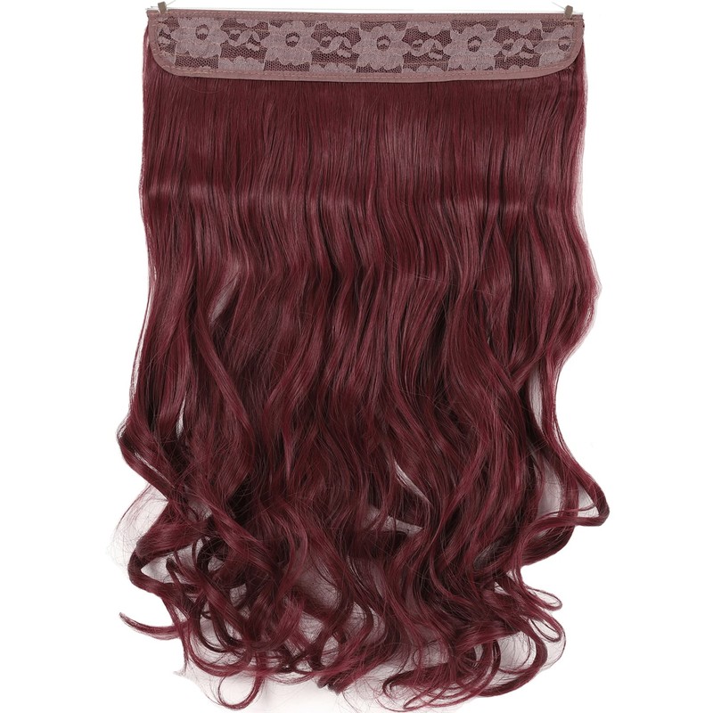 GIRLSHOW Hair Extensions with Invisible Wire Transparent Headband Synthetic 20 Inch 4.4 Oz Wavy Curly Adjustable Size No Clip Hairpieces for Women (Dark Wine Red -#26, 20 Inch)