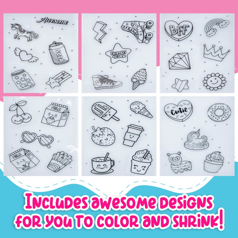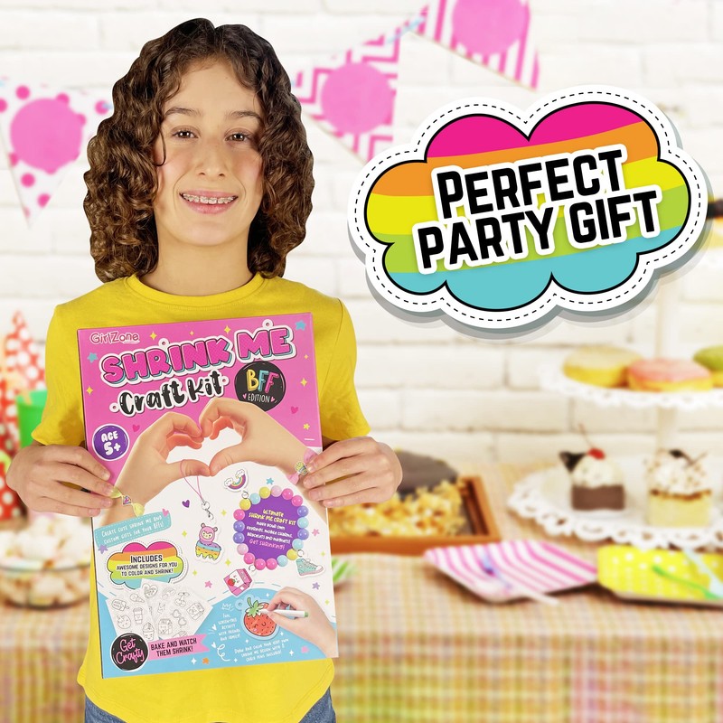GirlZone Shrink Me Craft Kit, Create Shrink Art with Shrink Film, Key Chains, Bracelets, Pre-Printed Shrink Sheets, Funny Gift Idea, for Crafts for Children