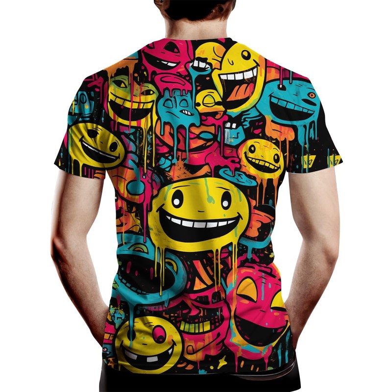 Girren Funny Graffiti Graphic T-Shirts for Men 3D Print Smile Face Tshirt Hip-Hop Tee Top,Black1,XL