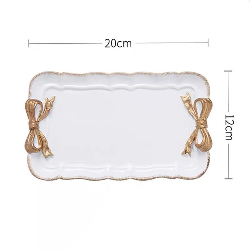 Gisela Adorable Bow-knot Trinket Dish Resin Jewelry Tray Perfect for Holding Small Jewelries, Necklaces, Earrings, Bracelets Decorative Plate (White Rectangle)