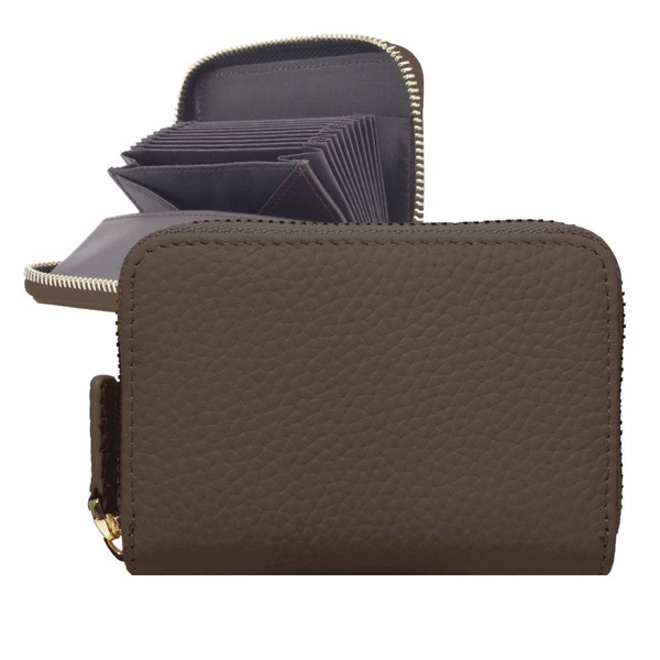 Giselle Card Case, Mini Wallet, Women's, Men's, Card Slots, Large Capacity, Bellows, Cowhide Leather, Magnetic Closure, Coin Slot, Coin Case, Notes Won’t Fold, Mocha