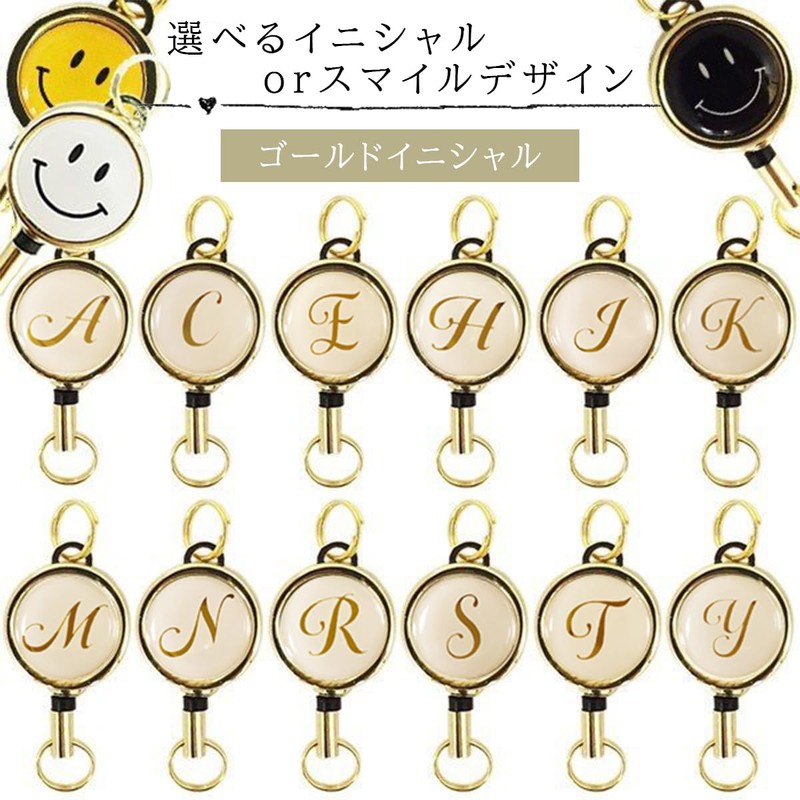 - The strap features a hook that makes it easy to detach the case from your bag. The gold ribbon serves as an accent. The reel mechanism is decorated with an initial. You can choose from among 10 different initials.