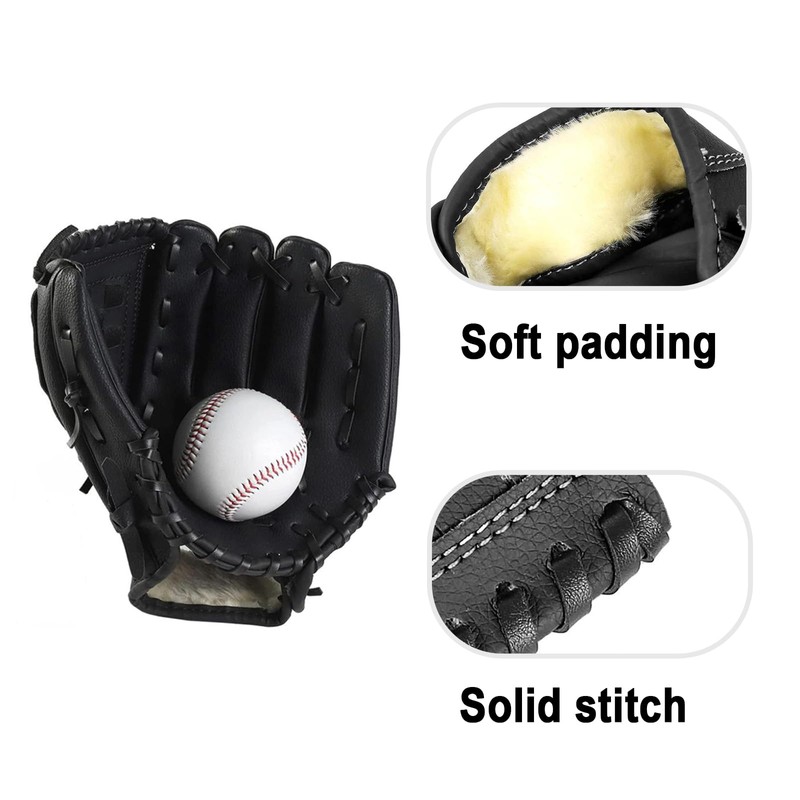 2. The padded palm of the baseball gloves reduces impact when catching, while the soft faux fur lining provides a comfortable fit. The adjustable tie strap ensures a secure hold and stability.