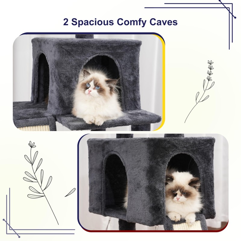 - Multi-level Tall Cat Tree: The design of two independent sisal scratching boards and the platform design for each layer make this cat tree have distinct layers and a reasonable structure. Even kittens and senior cats can climb it with ease.