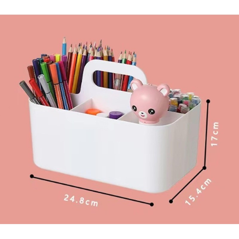 - The drainage design of the multi-purpose desk organiser is ideal for use in humid environments, such as bathrooms, kitchens, or as a cleaning supply box.