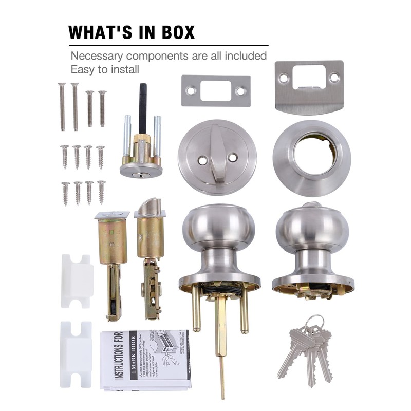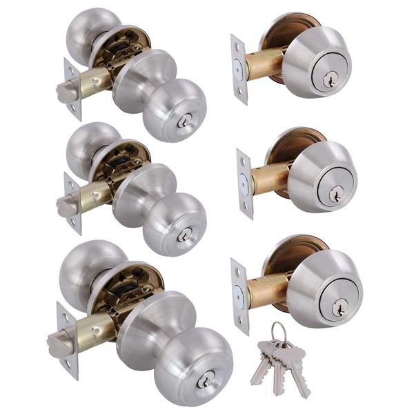 GITRANG (3 Pack All Keyed Identical Deadbolt Door knob Single Cylinder Deadbolt Lock Combo Set, Classic Satin Nickel Exterior Door Knobs with Deadbolt Entrance and Front Door Lock