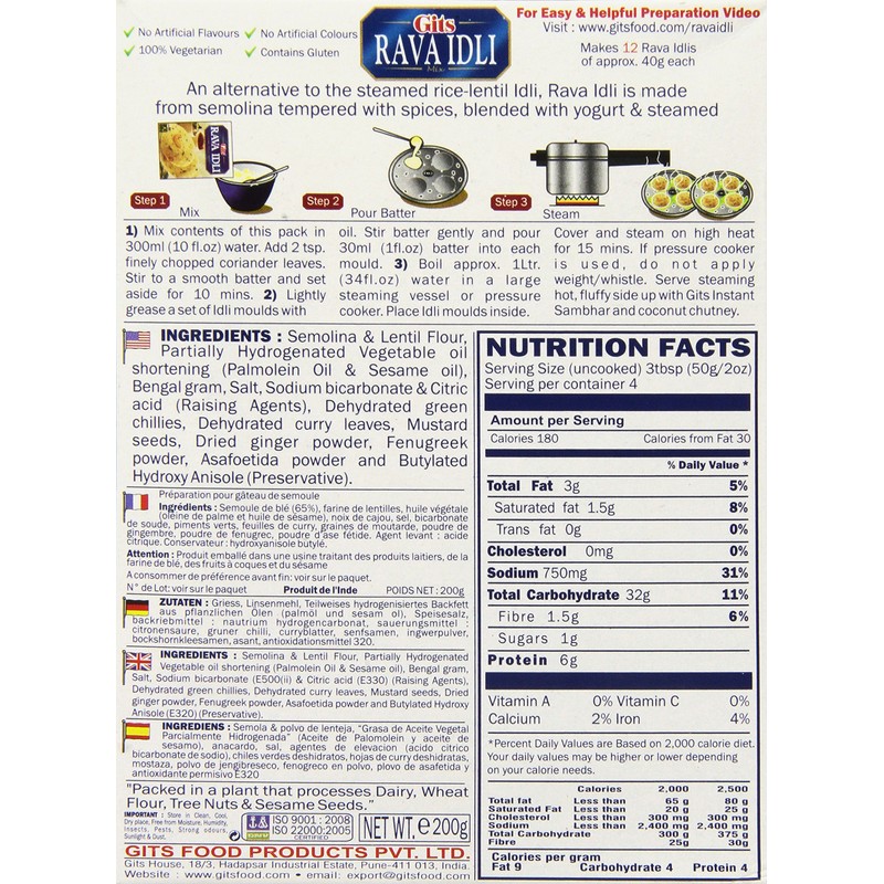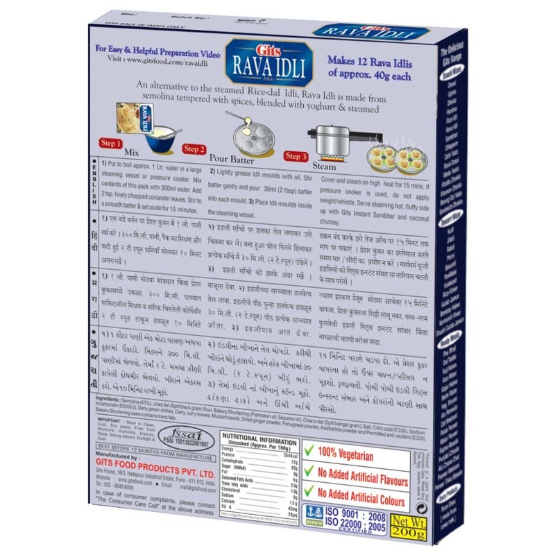 Gits Rava Idli Mix, 7 Ounce