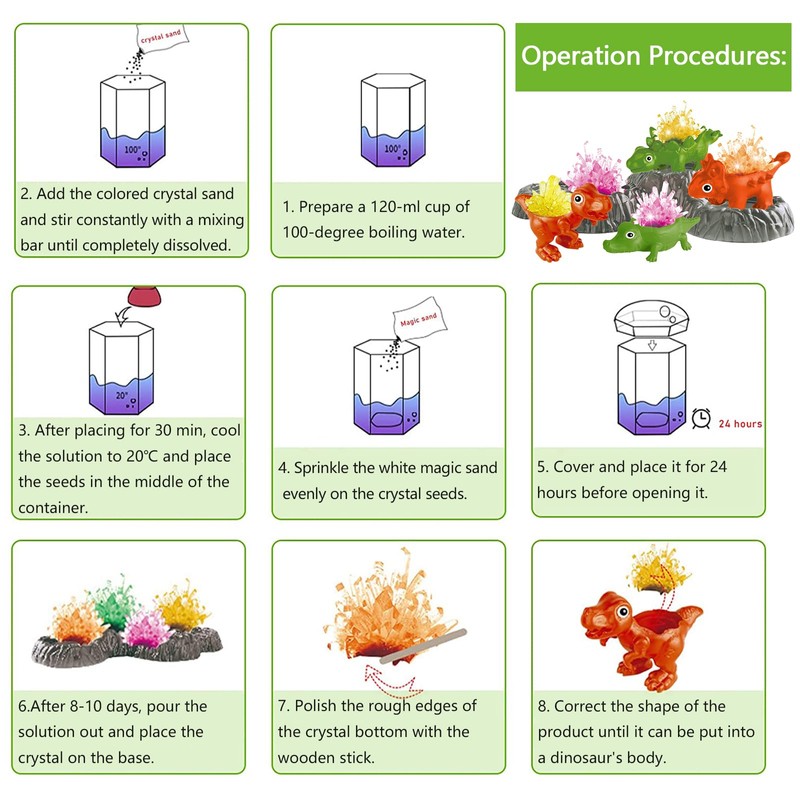 - Notes: This product is suitable for children over 3 years and should be used under adult supervision. Please refer to the instructions carefully to ensure safe and successful crystal growth.