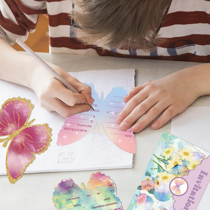 - Butterfly-shaped design: the invitation cards children's birthday have a unique butterfly-shaped design that attracts attention and immediately conveys the occasion of the birthday.