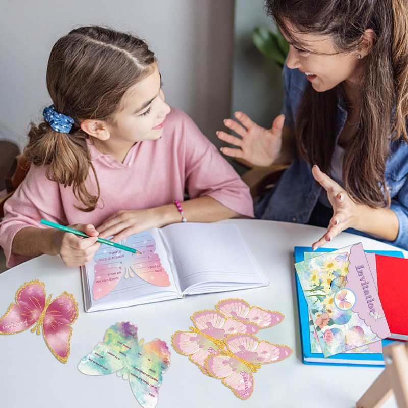 - Butterfly invitation card set: Our set contains 12 cards with 3D butterfly design, 12 envelopes and 12 stickers. Perfect for a birthday!