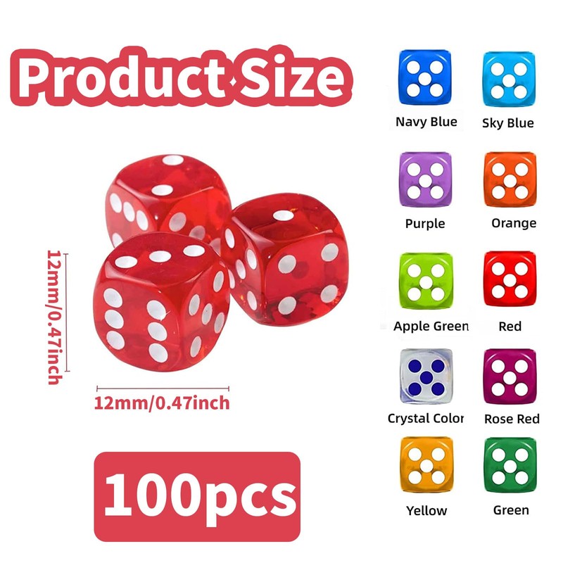 • Standard size: Each cube is a standard round 12 mm square in a variety of colours and is durable, attractive and easy to use. 100 cubes are enough for several people at a party.