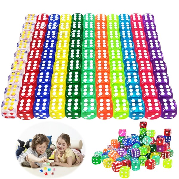 Giugio Set of 100 Dice Set, 6-Sided Dice Colourful Set, 12 mm Dice Games, Tab...